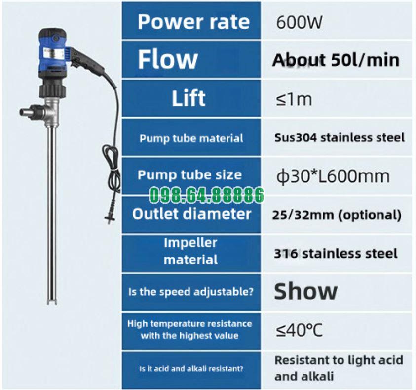 Bơm xách tay ống thả model JDT-600W-30SUS304