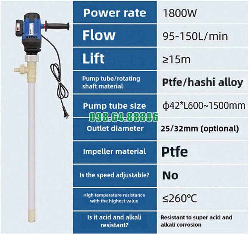 Sự bền bỉ của Bơm điện thùng phuy 200L JDT-1800W-PTFE trong môi trường axit