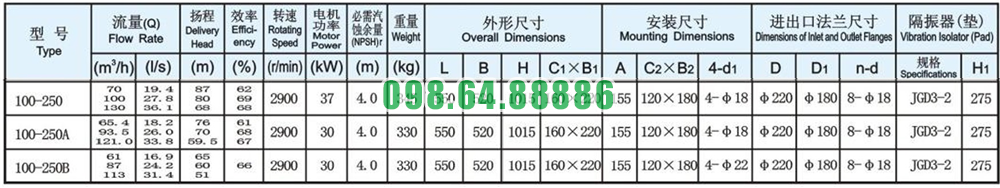 Thông số kỹ thuật và kích thước bơm model ISG100-250