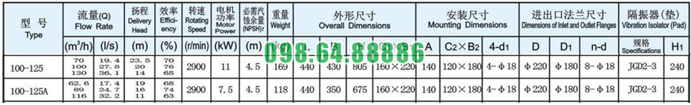 Máy bơm trục thẳng đứng, bơm lắp thẳng trục, bơm inline ISG100-125, IRG100-125 11kw, 100m3, 20m